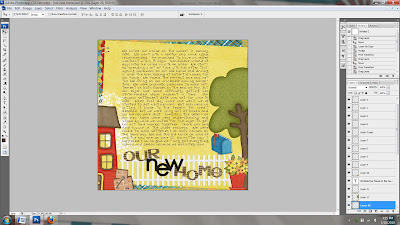 3. Next, I picked out my background papers and copy-and-pasted my journaling onto the page. At this point, I didn’t like the way I had placed my title, so I fiddled with that some, too.